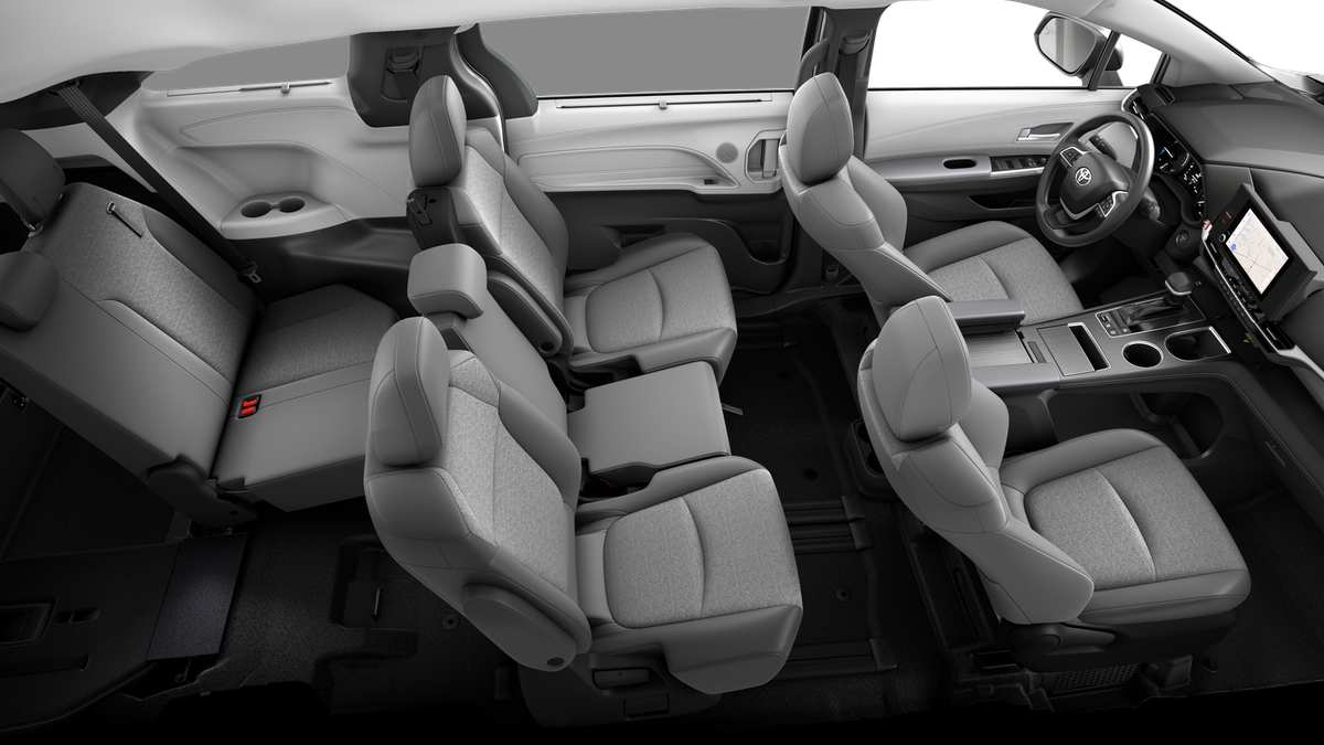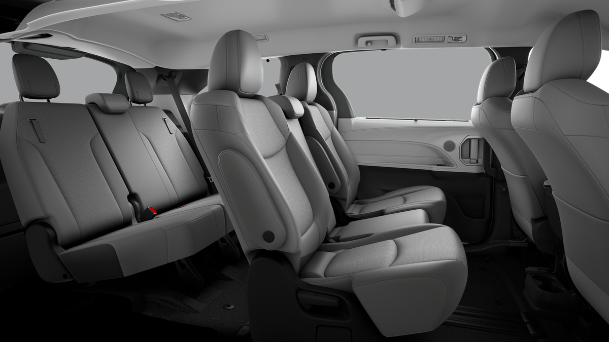 - 8-passenger seating with fabric second-row bench with stowable center seat